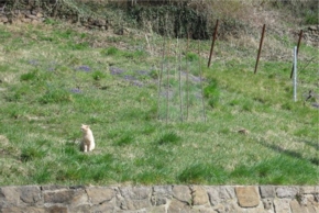 Der Kater meines Sohnes traut sich nach der Entfernung des Waschbären wieder hinaus auf den befriedeten Weinberg.